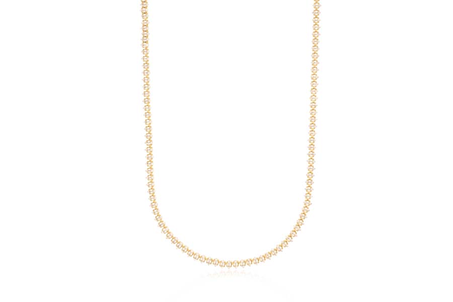 CHOKER BANHADA EM OURO, RIVIERA NAVETE 3mm LARGURA, 37cm COMPRIMENTO E EXTENSOR 5cm COMPRIMENTO